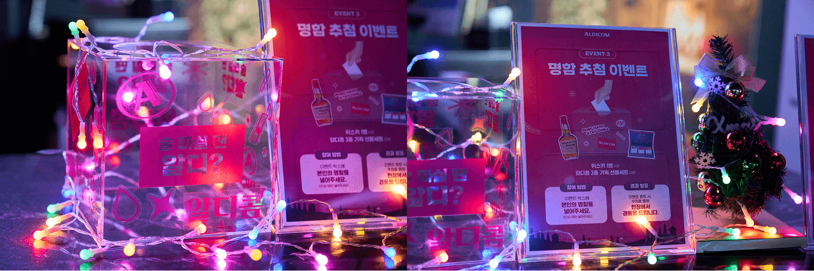 행사의 콘셉트와 장소의 특성을 고려하여 부스를 운영했고, 알디콤의 세련된 브랜드 이미지가 현장 분위기와 완벽하게 어우러졌어요. 덕분에 임직원들로부터 "연말 파티에 꼭 필요한 센스 있는 선물"이라는 뜨거운 반응을 이끌어내며 성공적으로 캠페인을 마무리했어요!