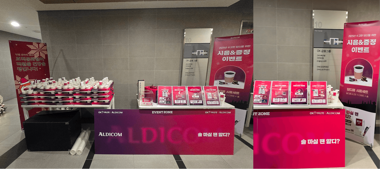 OK저축은행에서는 기업 사내 연말 행사와 알디콤 팝업을 연계하여 더욱 풍성하고 의미 있는 시간을 마련했어요. 특히 이번 팝업은 시간대와 상황에 맞춘 위펀애드의 세심한 기획력이 돋보였는데요!