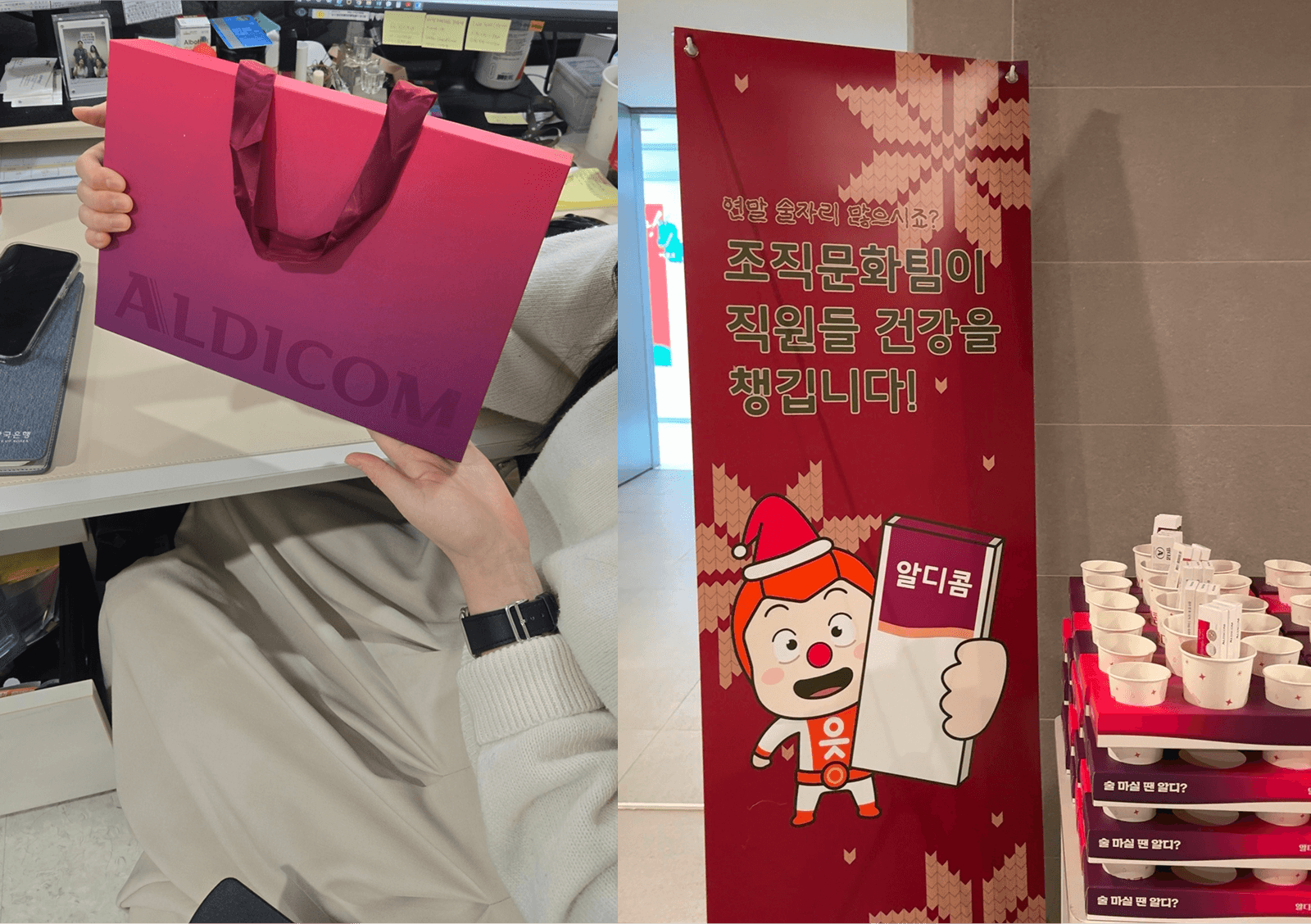 첫 번째로 소개해 드릴 브랜드는 프리미엄 숙취해소제로 입소문을 타고 있는 '알디콤'인데요! 술자리가 잦은 연말 종무식 시즌에 맞춰 IT 및 금융 기업을 방문, 임직원들의 건강한 연말을 지원하며 브랜드에 대한 긍정적인 인상을 각인시켰어요.
