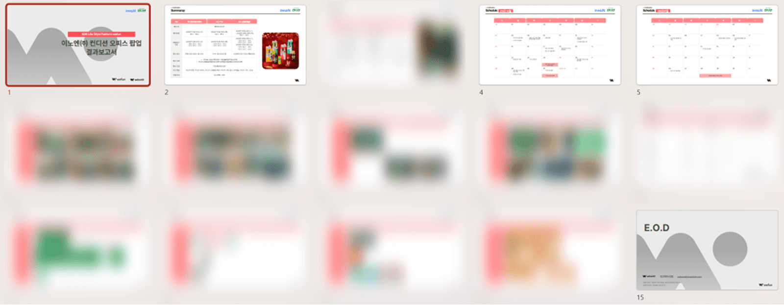 위펀애드는 행사가 끝난 뒤, 정량적/정성적 인사이트를 꾹꾹 눌러 담은 보고서도 함께 전달해 드려요! 단순 수치 나열이 아닌 '현장 반응 분석, 참여 임직원 피드백, 고화질 현장 스냅 사진' 등이 담겨있어요.