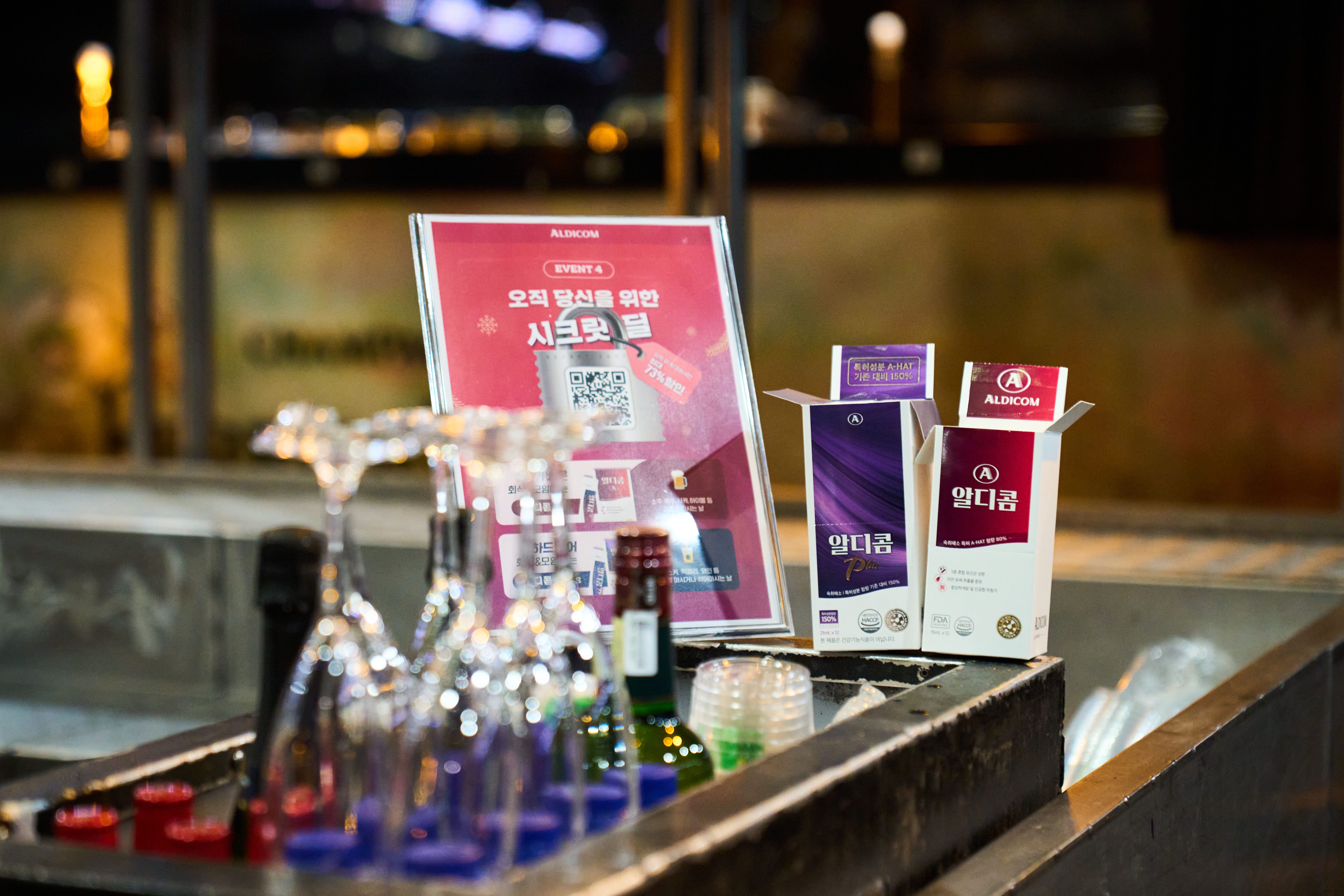 알디콤 안성맞춤 '숙취해소 풀코스': 알디콤과 궁합이 좋은 음료 및 가벼운 스낵을 하나의 패키지로 구성해 현장에서 바로 즐길 수 있는 '숙취해소 풀코스'를 제공했어요.
