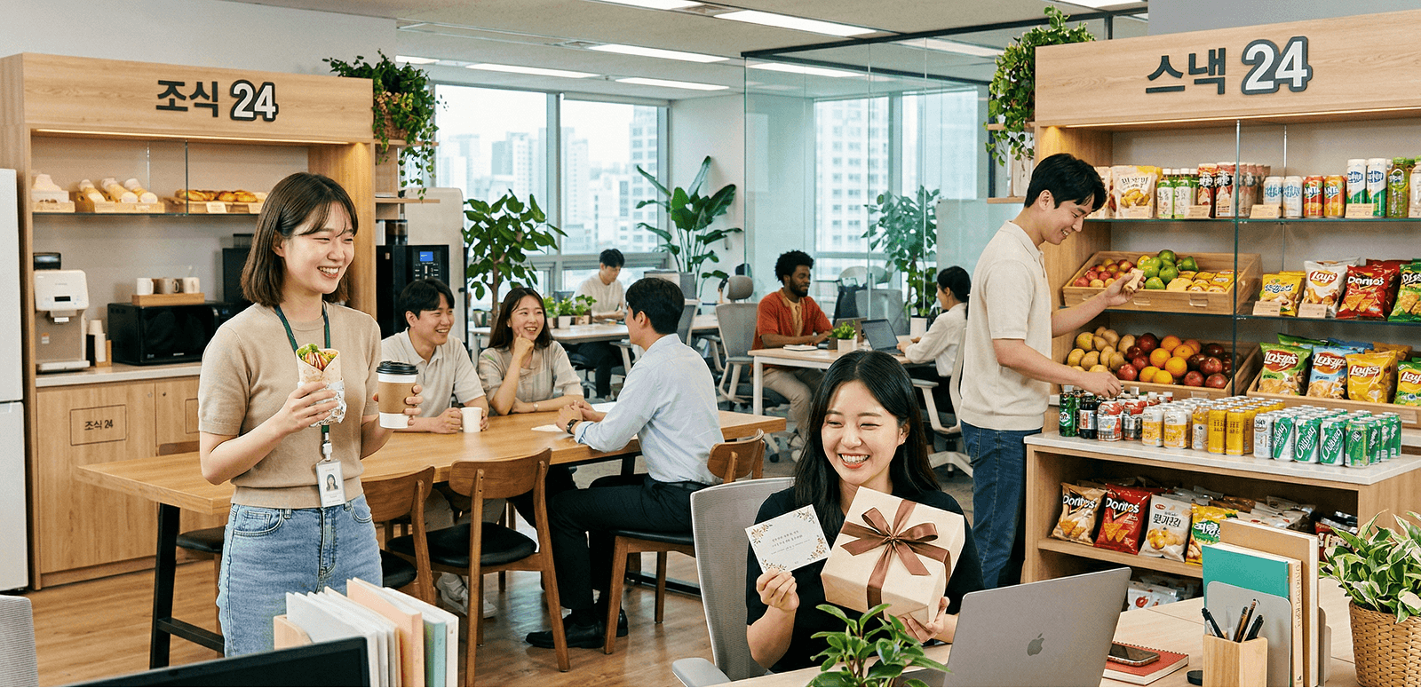 출근길을 챙겨주는 조식24나 업무 몰입도를 높여주는 스낵24, 그리고 특별한 날의 기쁨을 더하는 선물24는 기업이 직원을 귀하게 여기고 있다는 강력한 메시지가 될 수 있어요.