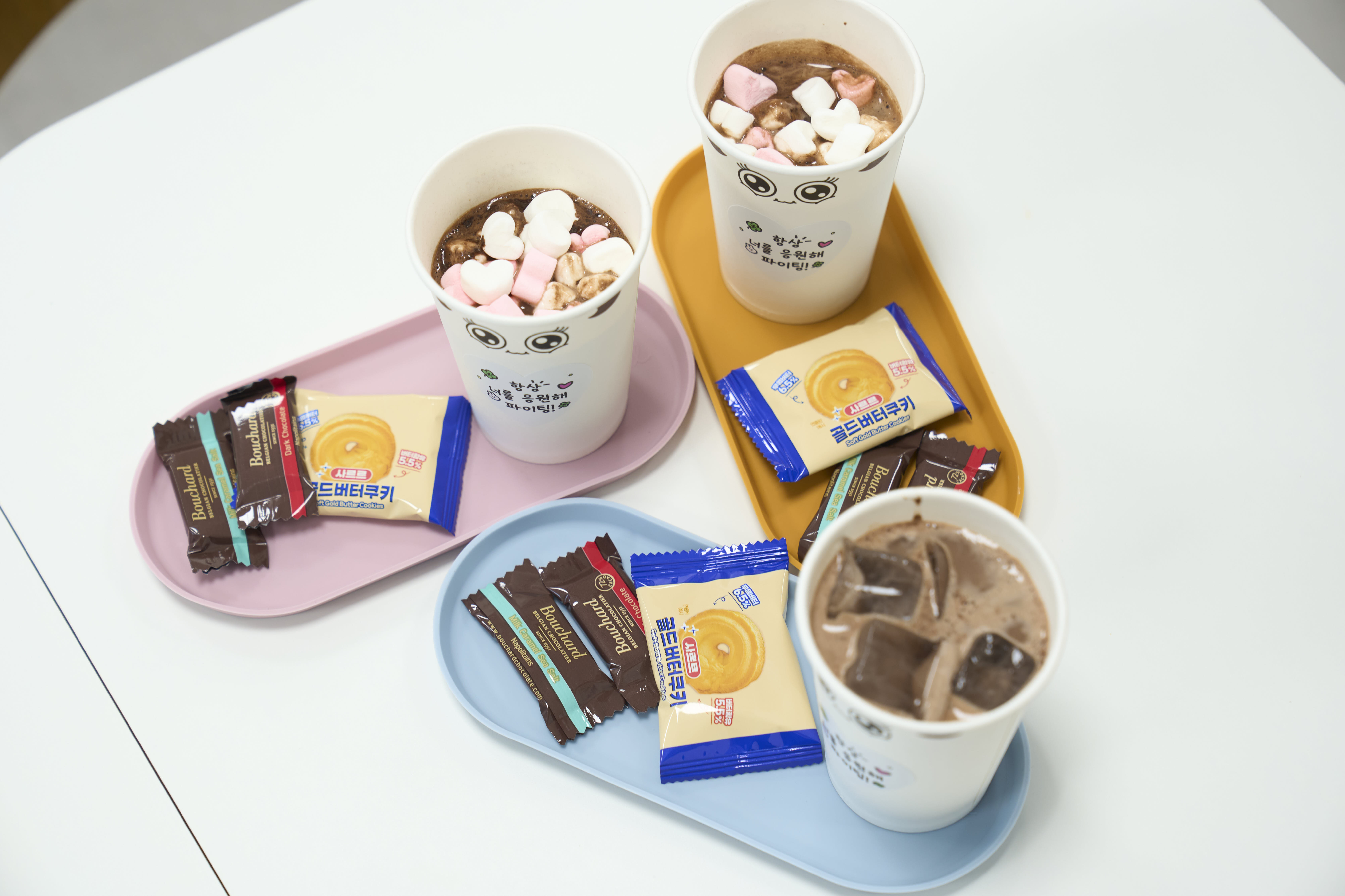 미떼 핫초코와 찰떡궁합을 자랑하는 버터쿠키, 그리고 달콤한 초콜릿도 함께 구성하여 증정했어요. 업무 중 짧은 휴식이 임직원들에게 완벽한 티타임으로 기억될 수 있도록 구성 하나하나에 세심한 배려를 담았죠!