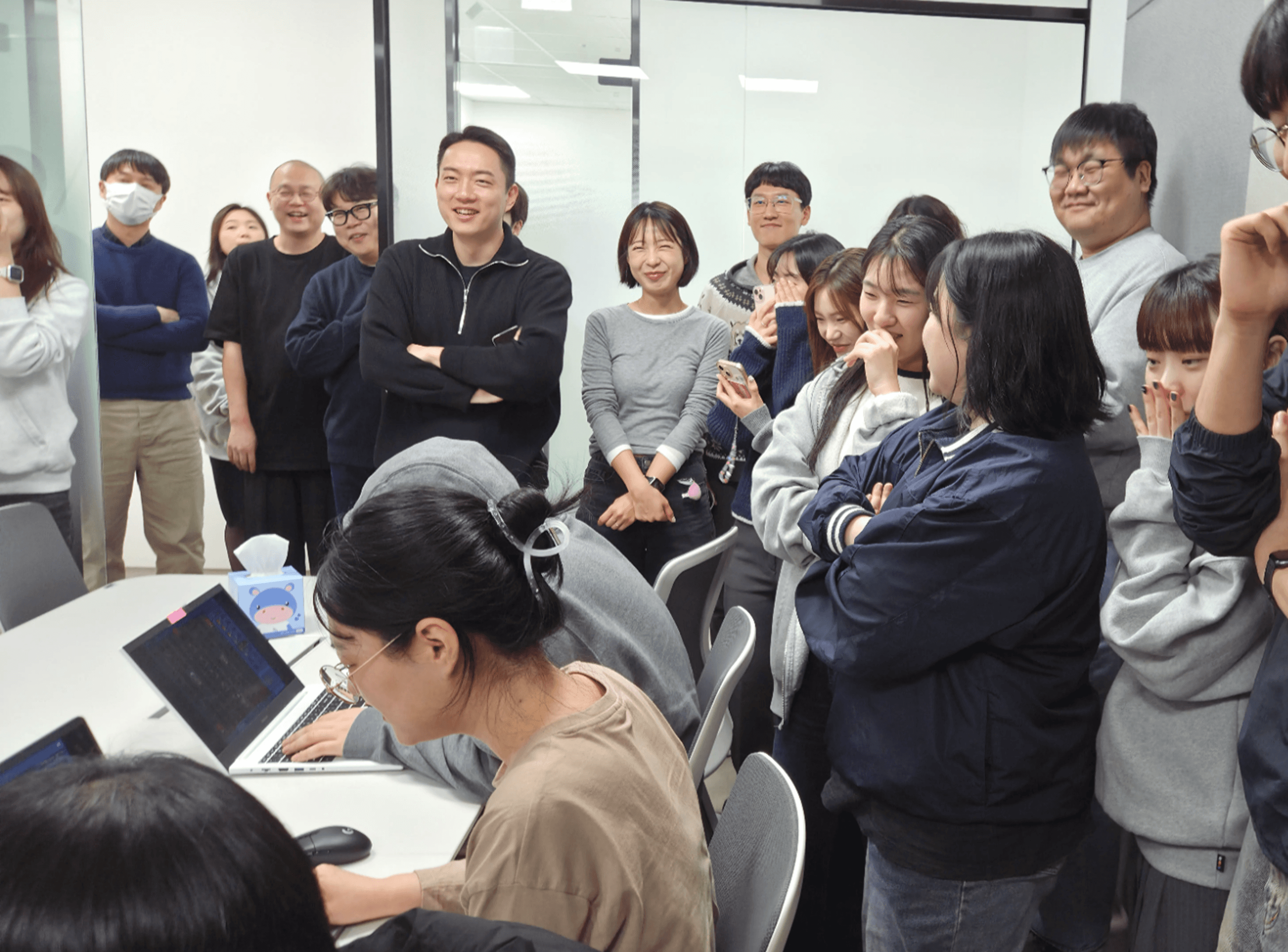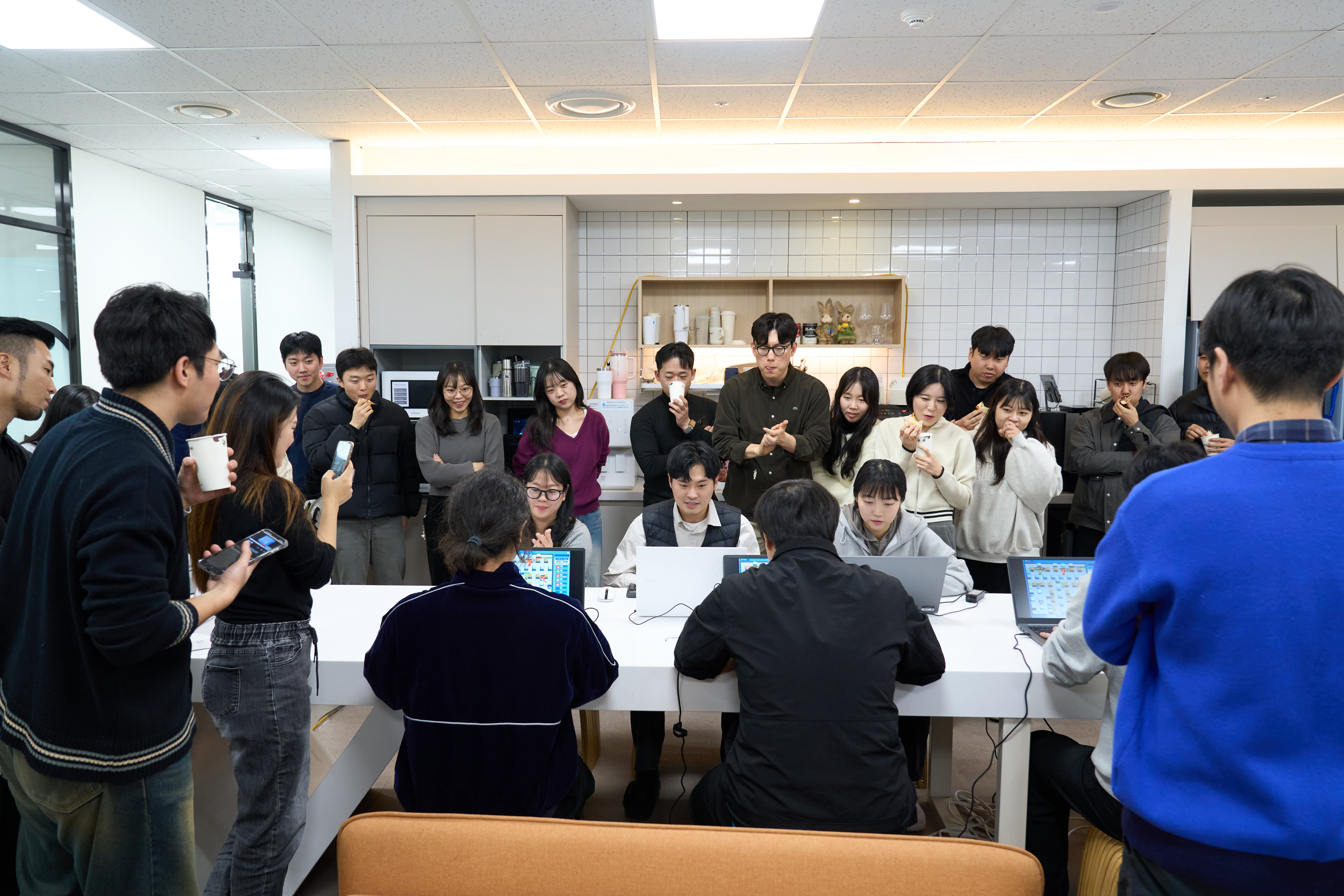 경기는 회를 거듭할수록 긴장감이 더해졌어요. 한 게임당 10분을 넘기지 않는 짧은 호흡이었지만, 그 안에서 펼쳐지는 심리전과 팀워크는 결코 가볍지 않았는데요. 팀 연말 회식비가 경품으로 걸려있다 보니 경기에 참여하지 않는 팀원들도 옹기종기 모여들어 열띤 응원을 보냈고, 승패와 상관없이 서로 하이파이브를 하며 대회를 하나의 축제로 즐겼답니다🎁
