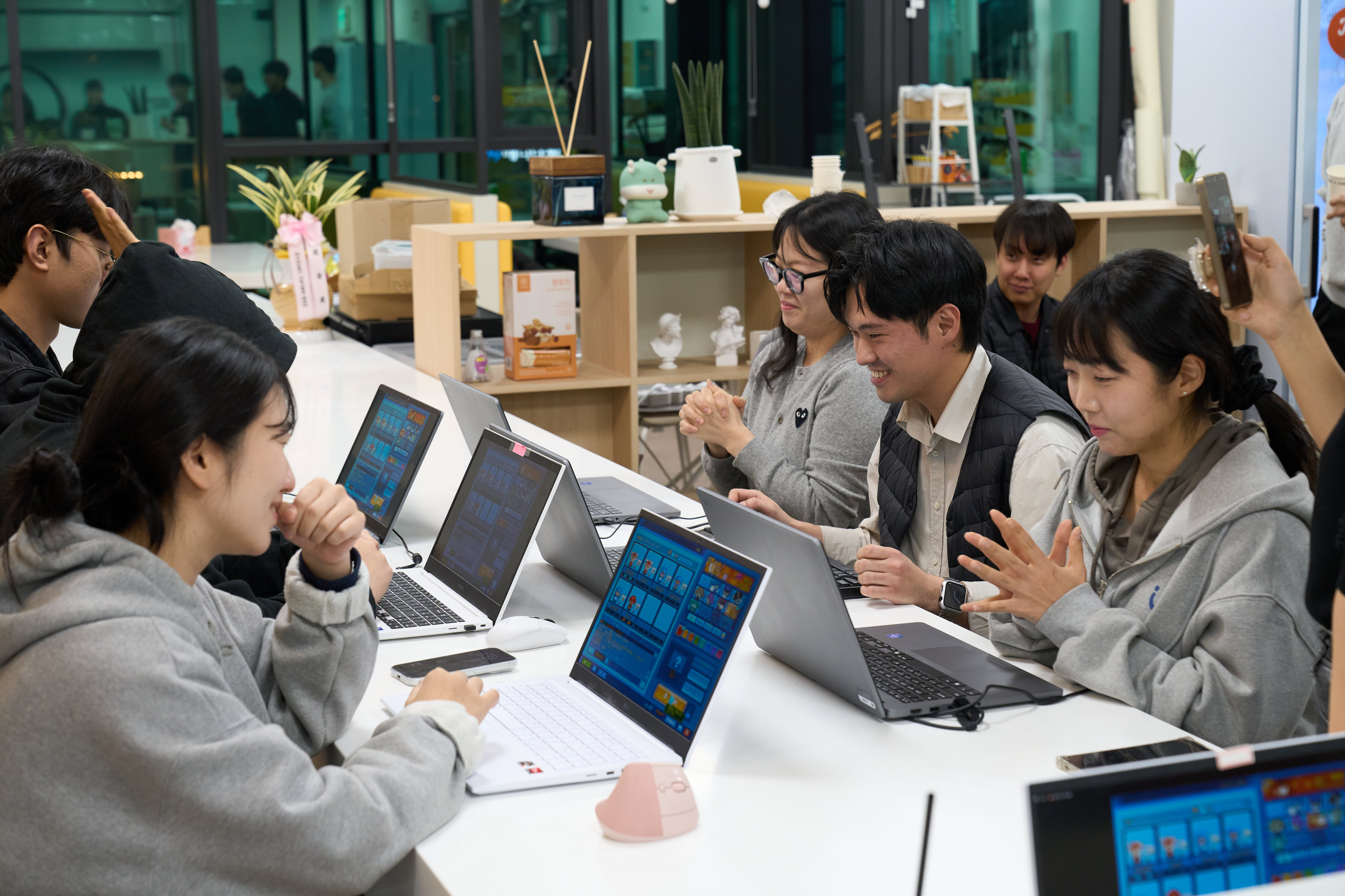 종목은 남녀노소 누구나 쉽게 참여할 수 있는 추억의 국민 게임, 넥슨의 '크레이지 아케이드'였어요. 대중적인 게임인 만큼 진입 장벽이 낮아 신입 사원부터 임원진까지 누구나 부담 없이 참여할 수 있었죠. 특히 고사양의 장비가 없어도 각자 업무용 노트북으로 간편하게 참여할 수 있다는 점이 큰 장점이었는데요😊 행사 참여를 위해 회사 밖으로 이동하지 않아도, 따로 시간을 마련하지 않아도 언제 어디서든 쉽게 참여할 수 있었어요.
