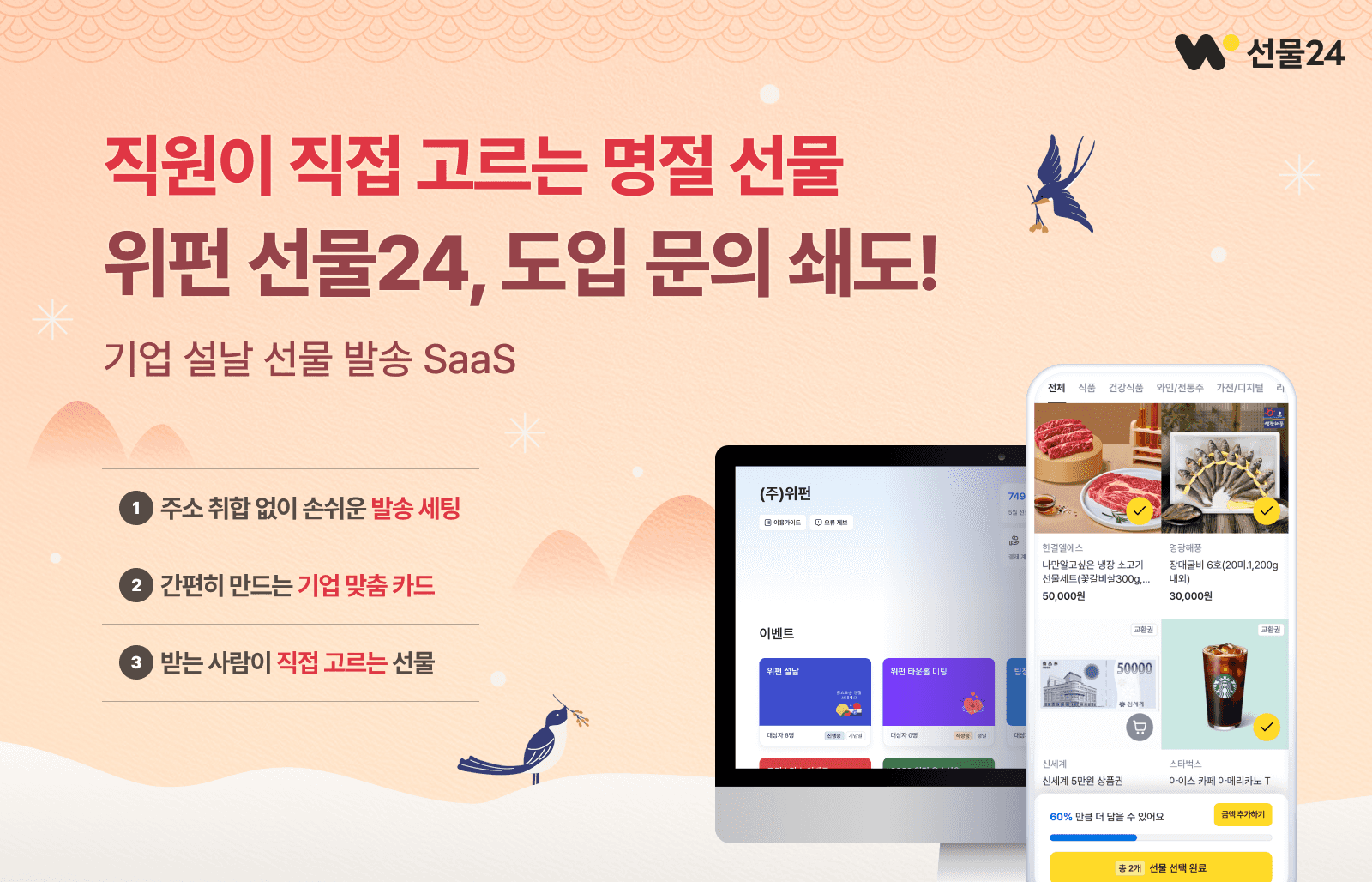 BaaS 플랫폼 기업 위펀(대표 김헌)이 운영하는 기업 전용 선물 SaaS ‘선물24’가 2026년 설 명절을 앞두고 기업 고객 문의가 빠르게 늘어나며, 명절 선물 준비 방식의 변화를 이끌고 있다.