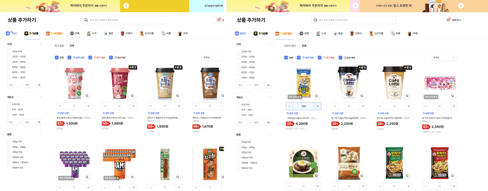 스낵24 관리자 페이지에서는 일반 과자뿐만 아니라 음료, 간편식, 신선식품, 사무 비품까지 한 번에 쇼핑할 수 있어요. 특히 스낵24만의 단독 특가와 행사 상품을 활용하면, 냉동식품부터 음료까지 브랜드 제품을 훨씬 경제적인 비용으로 구매할 수 있죠.