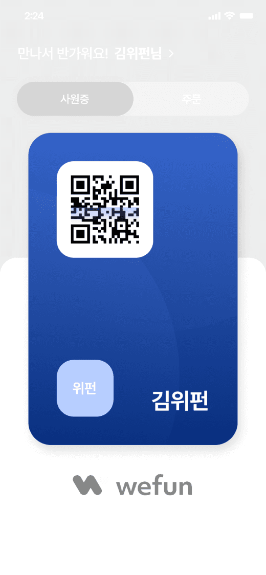 사원증 태깅으로 식권을 대체하세요.사원증에 포인트를 부여할 수도 있어요.