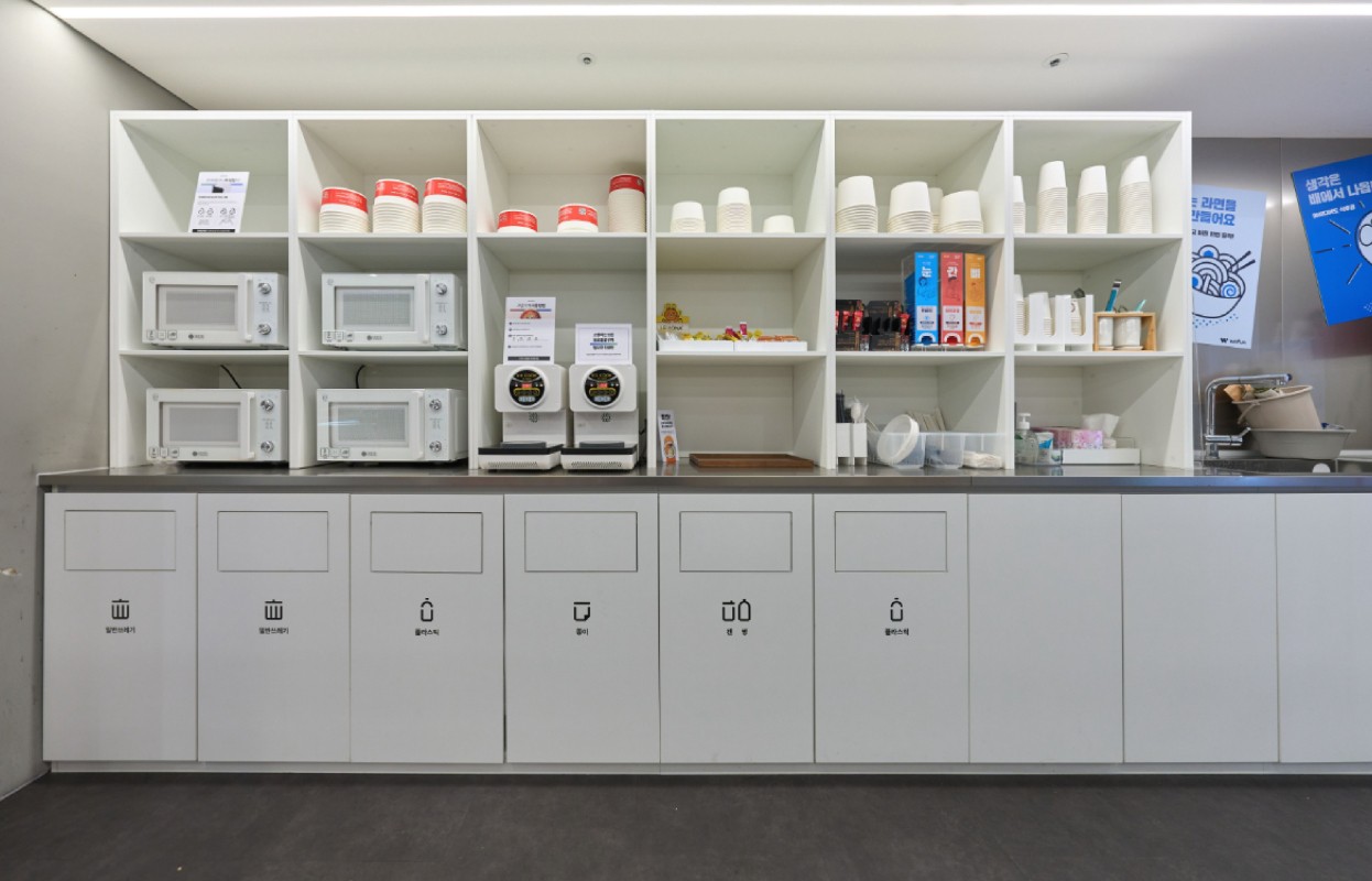 봉지라면(신라면, 짜파게티 등), 반찬류(단무지, 김치, 치즈 등)