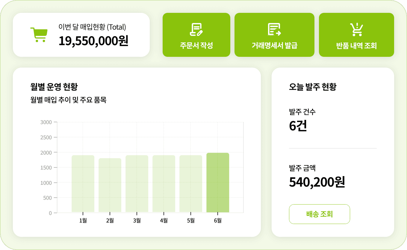 안정성이 검증된 대기업 물류의 복수거래를 통해 합리적이고 경쟁력 있는 식자재 구매가 가능합니다