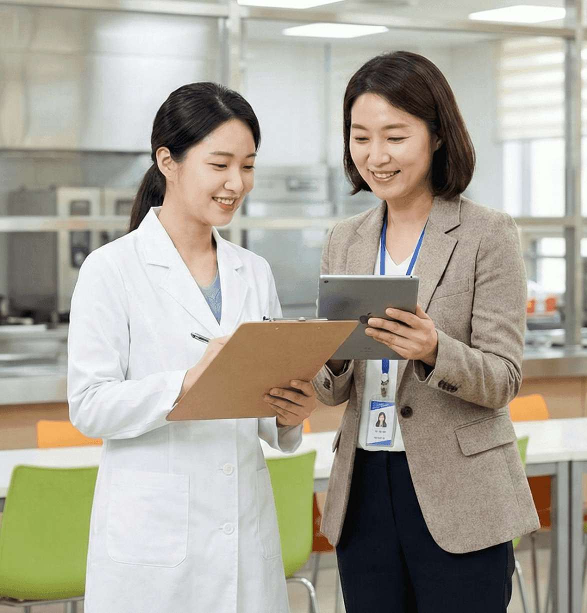 신메뉴 레시피 제공부터 매일 같은 인력으로 구현하기 어려운 메뉴까지 조리 지도를 도와드립니다
