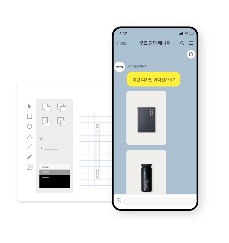 굿즈 전문 매니저와의 1:1 상담으로 원하는 굿즈를 보다 편하게 제작할 수 있습니다.