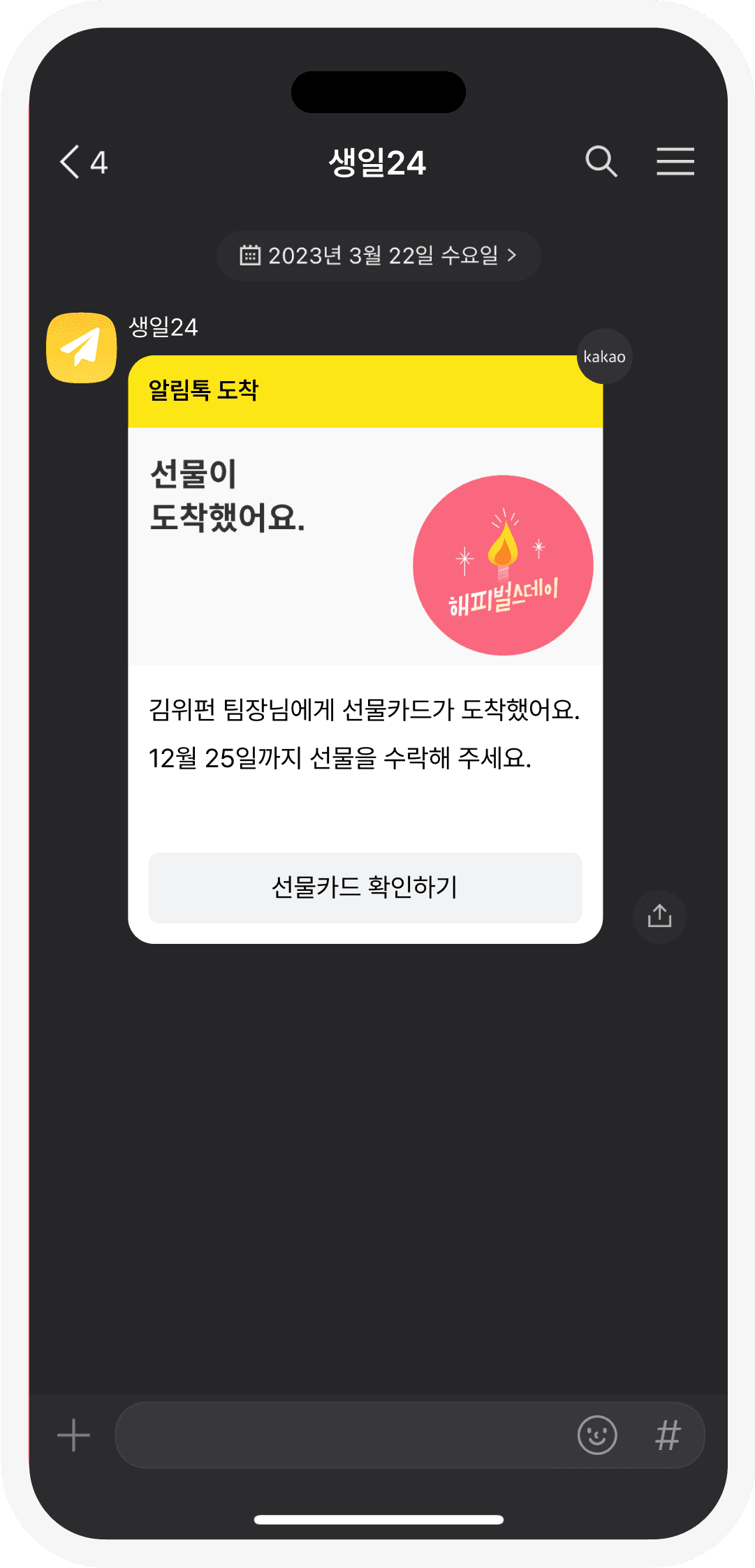 김위펀 팀장님에게 선물카드가 도착했어요.